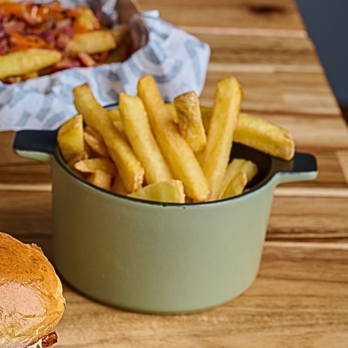 Mézclum, pollo asado, patatas gajo, manzana, maíz, zanahoria, salsa agridulce